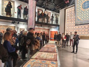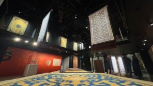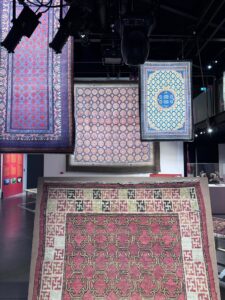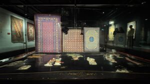 La mostra presenta oltre quaranta tappeti propriamente cinesi della Collezione Zaleski, affiancati da un importante nucleo di opere provenienti dall’attuale Xinjiang, in particolare dalle storiche città-oasi di Kashgar, Yarkand e Khotan.
